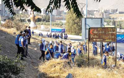 «رسالتنا للعالم أن بلدنا سيعود بسواعدنا أجمل وأقوى مما كان» عبارات رددها الكثير من الشباب المتطوعين الذين التقتهم سانا خلال انضمامهم للعمل رغم ارتفاع درجات الحرارة والغبار والأتربة التي ملأت المكان حيث يقومون بإزالة الاعشاب اليابسة وبعض الردميات المتراكمة ويقول الطالب فيصل سعد من رابطة برزة لاتحاد شبيبة الثورة إنه يشارك مع زملائه للسنة الثانية بالحملة التي انتظروا انطلاقتها منذ بداية العام ويتابعون تفاصيلها على مواقع التواصل الاجتماعي، مؤكدا أن إعادة إعمار سورية واجب على جميع أبنائها.