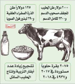 وأوضحت في بيان لها أن تحديد الأسعار الاسترشادية لهذه المواد يأتي في إطار إجراءاتها وفي ضوء توجيهات الحكومة بدعم وحماية الإنتاج المحلي بشقيه الزراعي والصناعي، وعليه تمت دراسة هذه المواد من قبل لجنة القرار 172 المكونة من ممثلي مختلف الجهات المعنية والاتحادات الاقتصادية وبالتنسيق والتكامل مع وزارة الزراعة، بالنظر إلى منافسة الحليب المجفف المستورد وتأثيره الواضح على أوضاع مربي الأبقار الحلوب وإنتاج مزارعهم وتسويق مادة الحليب السائل المنتجة في مزارع القطاعين العام والخاص على حد سواء، إلى جانب التأثير المماثل على إنتاج الأبقار الحلوب لدى الفلاحين في مزارعهم، ولا سيما ان هذا الإنتاج بدأ يسجل تزايداً ملحوظاً كنتيجة لارتفاع معدل استيراد الأبقار الحلوب وانتشارها في معظم المناطق.