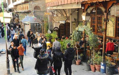 لدمشق حكايات تطول مع المقاهي حيث انتشر فيها عدد كبير منها تعود بمعظمها للقرن التاسع عشر الميلادي، وتخصصت هذه المقاهي حسب زبائنها فهناك مقاه للحرفيين وأخرى للتجار لكن الأكثر شهرة هي المقاهي التي يرتادها المثقفون والفنانون والأدباء. ومقهى النوفرة في قلب دمشق القديمة الضاج بالحياة وصخبها أحد هذه المقاهي التي تجذب بعراقتها وحفاظها على ملامحها دونما تغيير كبير الزوار لموقعها المتفرد في الشام القديمة. وحتى تصل إلى النوفرة يجب ان تخترق سوق الحميدية لتشاهد الدكاكين المنتشرة فيه وما تحويه من معروضات متنوعة من ملابس ومفروشات ومحلات العطارة والحلويات، وما أن تنهك من السير في السوق وتتعب من التسوق تجد في أسفل الدرج مقهى النوفرة لتستريح فيه. ويعرف المقهى الذي يعود تاريخه لأكثر من 500 عام حسب الباحث التاريخي غسان كلاس من الزحام الذي يميزه ومن عتباته الثلاث وشرفاته التي يشتهر بها واطلالته على الجامع الاموي وتتسع الصالة الداخلية فيه إلى 24 طاولة يجلس على كل واحدة منها اربعة اشخاص اما الصالة الخارجية فتتسع لـ12 طاولة يجلس على كل منها شخص واحد فقط ويفضلها الزوار للاستمتاع بمشاهدة العابرين إلى الجامع الاموي والمتسوقين والسياح. ويشير كلاس لـ سانا «سياحة ومجتمع» إلى ان مقهى النوفرة يطل على الجامع الاموي وأحد ابوابه الرئيسية، ويرتبط تاريخيا بوجود نافورة كانت في ذلك المكان حية من خلال نهر يزيد الذي كان يمر من هناك. ويضيف كلاس: إن من أجمل مآثر مقهى النوفرة العريق حفاظه على عادة الحكواتي القديمة، فقد كان الناس يجتمعون ليلاً للسمر والاستمتاع بقصص البطولة العربية كما يرويها الحكواتي الذي يتخذ مجلسه كل ليلة رمضانية محاولاً تطريز القصص الشعبية بفيض من خياله الواسع مستمتعاً بحالة الانبهار والدهشة التي يحدثها في نفوس المستمعين. وتجمع المصادر التاريخية أن عدد المقاهي في دمشق تراوح في الربع الاخير من القرن التاسع عشر بين 110 و120 مقهى، منها مقهى السكرية والقماحين اللذان يقعان في باب الجابية ومقهى العصرونية والرطل في باب توما، وجاويش في القيمرية وغيرها الكثير لكن أغلبها لم يعد موجوداً اليوم وتغيرت أنشطتها التجارية.