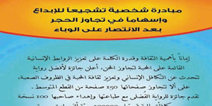 يماناً بأهمية الثقافة وقدرة الكلمة على تعزيز الروابط الإنسانية القائمة على المحبة لتجاوز المحن وبهدف استثمار فترة البقاء في المنازل للوقاية من فيروس كورونا، انطلقت بمبادرة شخصية جائزة أفضل رواية تتحدث عن التكافل الإنساني وتعزيز ثقافة المحبة في الظروف الصعبة.