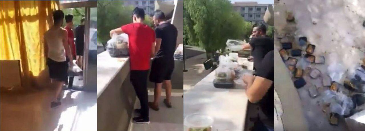 أقدم بعض المواطنين المحجورين في المدينة الجامعية بمحلة المزة في دمشق بتاريخ 2020/5/20م على إثارة الفوضى والشغب ورمي الطعام المخصص لهم من شرفة البناء
