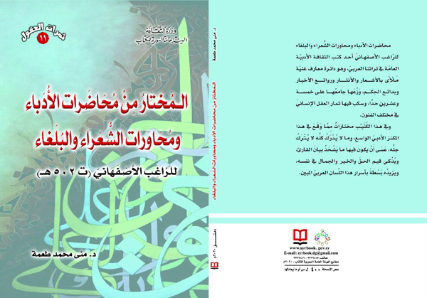 ضمن سلسلة “ثمرات العقول” كتيب ( المختار من محاضرات الأدباء ومحاورات الشعراء والبلغاء… للراغب الأصفهاني ) ، تأليف : د. منى محمد طعمة .