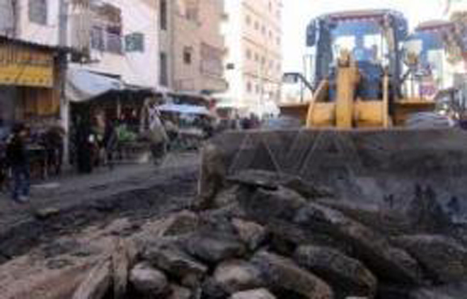 وأشار رئيس مجلس المدينة المهندس رائد منديل إلى أن شارع الوادي يعد مركزاً تجارياً يتجمع فيه باعة الخضار والفواكه واللحوم وغيرها وهو يعاني من وجود حفر في جسم الطريق بسبب تجمع المياه خلال هطل الأمطار ما اضطر مجلس المدينة لإجراء حل إسعافي لمعالجة المناطق المخربة من جسم الطريق ريثما يتم إجراء صيانة شاملة للشارع بعد انتهاء موسم الأمطار مؤكداً أن ورشات المجلس تقوم أيضاً بتسليك المجاري والمصارف المطرية في كامل الشارع.