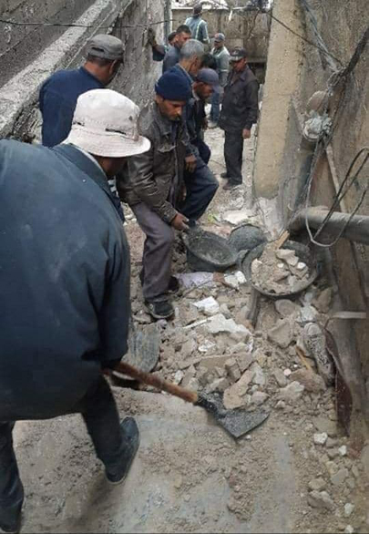 باشرت ورشات محافظة دمشق صباح اليوم أعمال رفع الأنقاض جراء انفجار اسطوانة الغاز في أحد الأبنية في حي المزة 86.