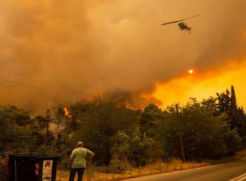 وقضت الحرائق بالإجمال على أكثر من مئة ألف هكتار من الغابات في اليونان منذ نهاية تموز الماضي فيما أتت النيران على مئات المنازل ومؤسسات صغيرة في جزيرة إيفيا وعلى جزء من بيلوبونيز وضواحي أثينا الكبرى.