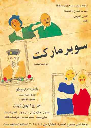 برعاية د. «لبانة مشوح» وزيرة الثقافة، تقدّم مديرية المسارح والموسيقا – المسرح القومي، الكوميديا الشعبيّة الواقعيّة «سوبرماركت». تأليف: الكاتب المسرحي الإيطالي «داريو فو». إعداد: «أيمن زيدان» و «محمود الجعفوري». إخراج: «أيمن زيدان».