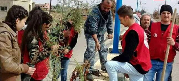 وفي سياق متصل نظم مجلس بلدة الجنينة بريف السويداء اليوم بالتعاون مع فرع الهلال الأحمر العربي السوري بالمحافظة وبمشاركة فعاليات أهلية وطلاب مدارس حملة تشجير ويوم نظافة تطوعياً وذلك بمناسبة يوم المجالس المحلية.