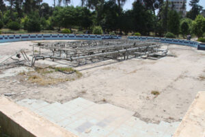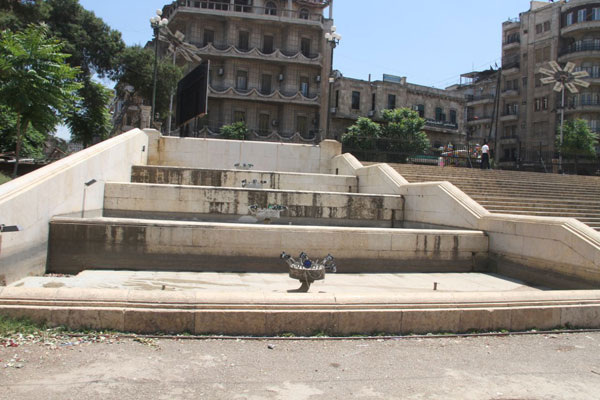 هذا هو الحال الذي وصلت إليه النوافير في الحديقة العامة ، فعلى مايبدو أن موجة الحر أثرت عليها فأصابها القحط ، وهو ماعبر عنه أبناء حلب ورواد الحديقة العامة التي تعتبر المتنفس الرئيسي لأبناء المدينة والذين يقصدونها سواء لممارسة الرياضة الصباحية أو التنزه وتمضية الوقت والتمتع بمناظرها.