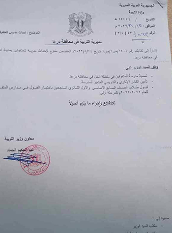 وافقت وزارة التربية على إحداث مدرسة للمتفوقين في مدينة إنخل بدرعا وذلك بناء على اقتراح مديرية التربية، والذي يؤكد وجود أعداد كبيرة من المتفوقين الناجحين إلى الصف الاول الإعدادي والأول الثانوي.