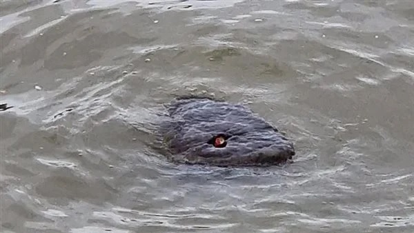 و تظهر الصور المتداولة كتلة سوداء كبيرة تطفوا فوق الماء، بعيون حمراء مخيفة للغاية.