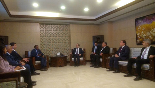 التقى الدكتور فيصل المقداد وزير الخارجية والمغتربين اليوم المدير العام للمنظمة العربية للتنمية الزراعية إبراهيم الدخيري والوفد المرافق له في مبنى وزارة الخارجية والمغتربين.