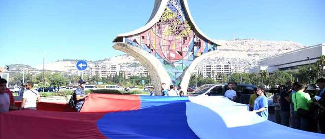 بمناسبة عيد العلم الروسي، شاركت فعاليات شبابية وثقافية اليوم في احتفالية رفع العلم الروسي بساحة الأمويين في دمشق.