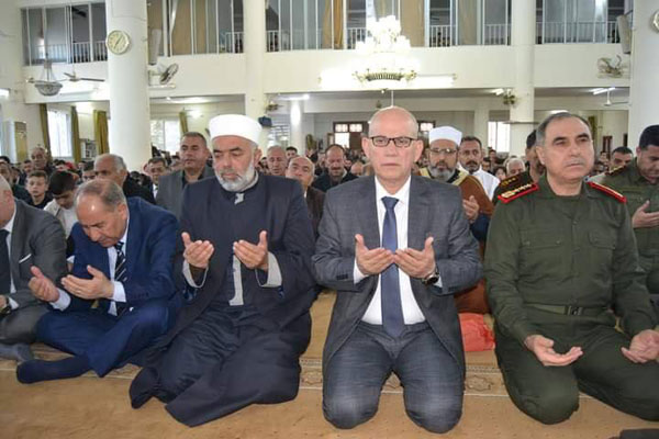 أدى محافظ درعا المهندس لؤي خريطه وأمين فرع حزب البعث العربي الإشتراكي حسين الرفاعي وحشد من المسؤولين صلاة عيد الفطر صباح اليوم في رحاب جامع موسى بن نصير بمدينة درعا.