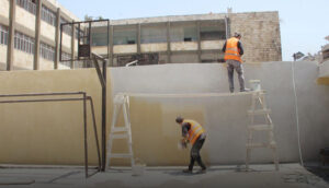 يقول المشرف على المشروع: نتابع العمل يومياً مع الكوادر المحلية، والمشروع يشمل الباحات، الجدران، الكهرباء، وكل ما يتعلق ببيئة الطالب.