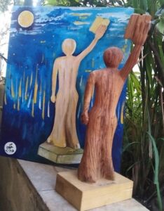 يصف هذه الفكرة بأنها “شاهد إثبات” لعمله الفني، يرمز لنا كما تفعل صورتنا في الهوية أو جواز السفر، وتوّجت تجربته الفنية بمشروعه الفريد من نوعه المعروف بـ”اللوحة والمنحوتة”، الذي أعلن عنه رسمياً العام الماضي في معرضه الفردي العاشر بدمشق.