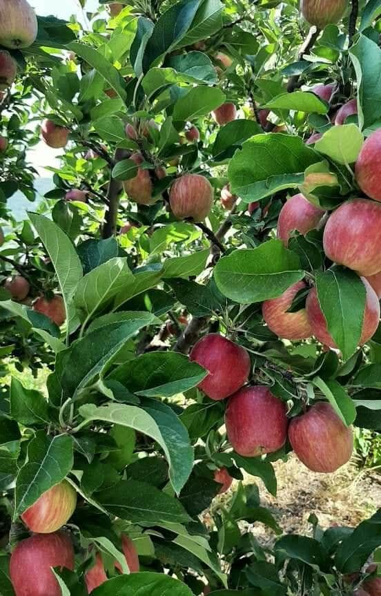 وعن واقع إنتاج التفاح، بين المزارع علي محمد أن بعض أصنافه وصلت لمرحلة النضج من حزيران، ويوجد أنواع مختلفة مزروعة من التفاح (الحزيراني ليتبعه جمال روما، والسفن اب والأبيض والريد بيل وغيرها).