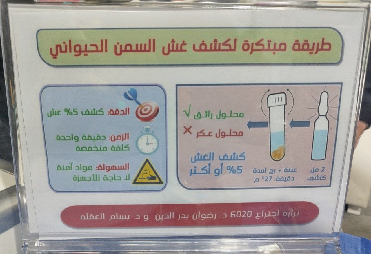ومن أبرز الابتكارات التي قدمتها الهيئة، طريقة جديدة لـ كشف غشّ السمن الحيواني بالشحم أو السمن النباتي المهدرج، وأوضح الدكتور بدر الدين أن الطريقة تعتمد على محلول خاص يُضاف منه 2 مل إلى أنبوب يحوي 1 غرام من السمن، وبعد بضع دقائق يمكن ملاحظة النتيجة، إذا كان اللون صافياً فهذا يدل على أن السمن أصلي، وإذا ظهر عكارة أو راسب، فهذا يشير إلى وجود غش بنسبة 5 بالمئة فما فوق.