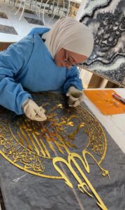 وتضيف: من خلال الأعمال اليدوية، قمت بالحفر على الزجاج بزخارف نباتية متقنة باستخدام جهاز ديرمل.