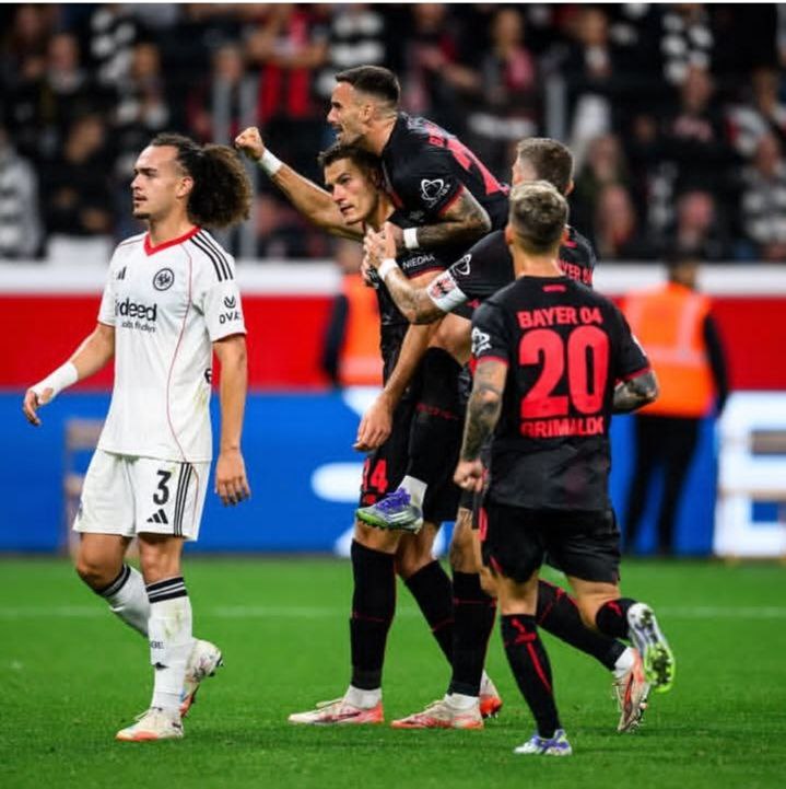 استعاد باير ليفركوزن توازنه، بعد تغيير جلده التدربي، بعد الاستغناء عن المدرب الهولندي المثير للجدل تين هاغ، والمجيء بالمدرب الدانماركي هيولماند الذي كان وجهه فأل حسن لفريقه، بتحقيقه الفوز الأول لليفركوزن هذا الموسم، وكان على حساب ضيف قوي هو فرانكفورت، بثلاثة أهداف لهدف، رغم تعرّض فريقه لحالتي طرد.