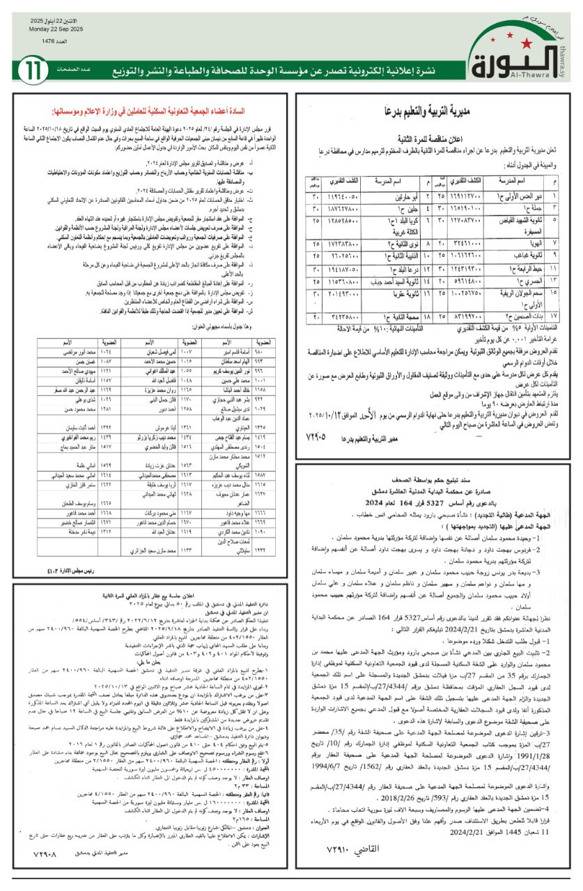 إعلانات العدد 1476 الاعلانات pdf # صحيفة الثورة في 22 سبتمبر , 2025 بتوقيت دمشـــق Loading... Taking too long? Reload document | Open in new tab تحميل العدد كاملاً [4.81 MB] مشاركة المقال: FacebookTwitterWhatsAppTelegramFacebook MessengerLinkedinطباعة