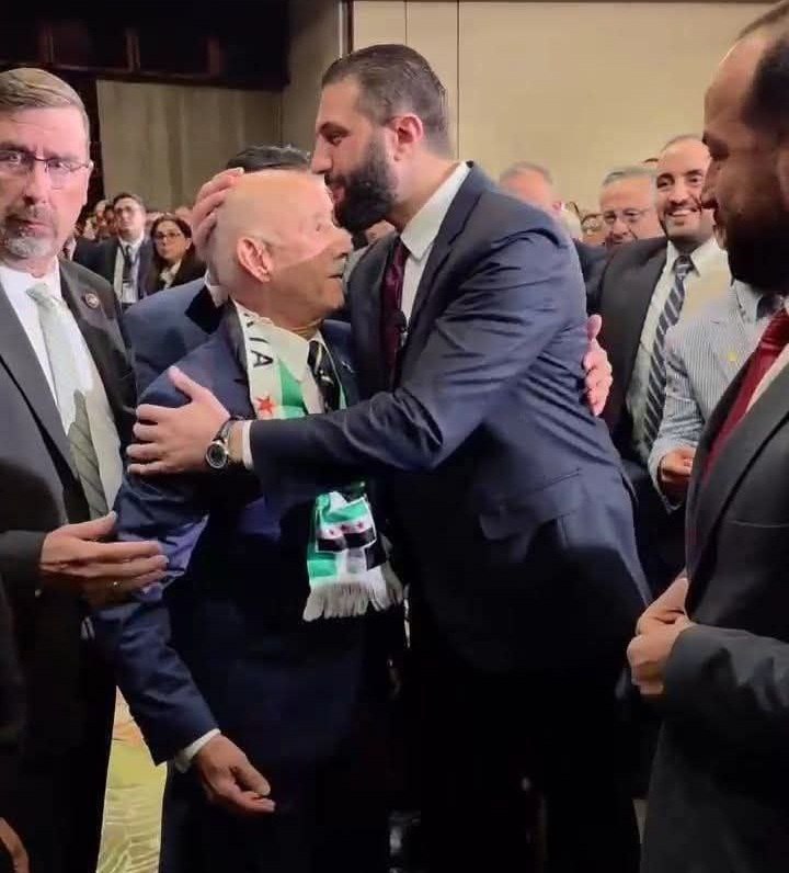 شهد لقاء الرئيس أحمد الشرع مع وفد الجالية السورية في الولايات المتحدة مشهداً إنسانياً عفوياً أثار استحساناً وإشادة كبيرة، حين تقدم المواطن السوري صفوان البرازي إلى الرئيس، فقبّل الأخير رأسه في لحظة مؤثرة، وتشير المعلومات إلى أن البرازي حُرم من دخول سوريا منذ عام 1973 بسبب النظام البائد، ما منح المشهد بعداً رمزياً يعكس التحولات التي تشهدها البلاد.