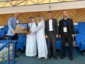 هنّأ وزير الرياضة والشباب محمد سامح الحامض، سعادة عبد اللطيف الفردان، بمناسبة انتخابه رئيساً لاتحاد الإمارات لكرة السلة، في الدورة الجديدة التي تمتد حتى عام (2028) وذلك خلال مباراة حمص الفداء السوري وكاظمة الكويتي في افتتاح بطولة الأندية العربية لكرة السلة السابعة والثلاثين، المقامة حالياً بصالة راشد بن حمدان بنادي النصر، وجاء ذلك عبر المستشار رامي يوسف الذي قدّم درّعاً تذكارياً، كما أهدى الفردان درع الوزارة، مؤكداً على عمق العلاقات بين الإمارات العربية المتحدة وسوريا، كاشفاً النقاب عن مذكرة التفاهم التي يتم التحضير لها، بالتنسيق مع اتحاد السلة الإماراتي، للإعلان عنها في وقت لاحق، والتي تتضمن تطوير منظومة كرة السلة وتبادل الخبرات. وأعرب الفردان عن شكره وتقديره لوزير الرياضة والشباب محمد سامح الحامض، معرباً عن سعادته بتواجد فريقين من سوريا مشاركين في بطولة الأندية العربية، مشيراً إلى العلاقة الرياضية الطيبة بين سوريا والإمارات.