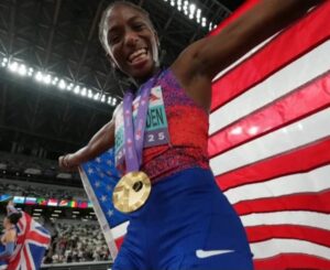 كما جمعت مواطنته الأمريكيّة ميليسا جيفرسون، ثنائيّة سباقات السرعة بإحرازها لقب (200) م، بعد (5) أيام من فوزها بسباق (100) م، ضمن بطولة العالم لألعاب القوى المُقامة في طوكيو، وقطعت العداءة البالغة (24) عاماً خط النهاية بوقت قدره (21.68) ثانية، وهو أفضل رقم عالمي لها هذا العام، متقدمة على البريطانية آمي هانت (22.14 ثانية) والجامايكية شيريكا جاكسون، حاملة اللقب في بودابست قبل عامين (22.18 ثانية).