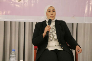 من جهتها أكدت الخبيرة مها الحاج علي، على دور المرأة المحوري في تحقيق العدالة الانتقالية، كونها حاملة لروايات الضحايا، وصوتاً للذين تعرضوا للانتهاكات، خاصة في الجرائم التي تستهدف النساء والأطفال، وعاملاً للمصالحة بسبب دورها المركزي في الأسرة والمجتمع من خلال بناء جسور الثقة بين الجميع، ومساهمة في آليات العدالة من خلال مشاركتها في تصميم وتنفيذ برامج العدالة الانتقالية كلجان الحقيقة والمصالحة وبرامج التعويض واعادة الإعمار. وتطرقت إلى معاناة المرأة السورية خلال السنوات الماضية، إذ تحملت مسؤوليات كبيرة وقاسية، فقدت المعيل، وتعرضَت للعنف والنزوح، واضطرت إلى تحمل أعباء إعالة الأسرة في بيئات بالغة الصعوبة.