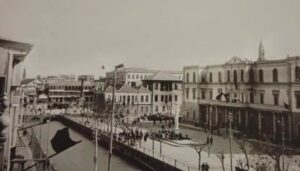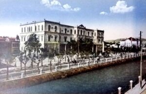 ينتقل الباحث “الأرمشي” إلى الواجهة الجنوبية الغربية التي يتخللها نوافذ متوجة بأشكال مختلفة، وهناك بروز لشرفة طويلة واقعة فوق المدخل الرئيسي للمبنى، وقائمة على عشرة أعمدة تجميلية وإنشائية في الواجهة الرئيسة الشمالية، ممتدة حتى طرفي الجناحين ما شكَّل بروزاً في التصميم المعماري على الطبقتين الأولى والثانية وعلى الجناحين المطلين على نهر بردى، كما لفت إلى إنشاء عمود تذكاري أمام المدخل الرئيسي من الرخام الخالص.