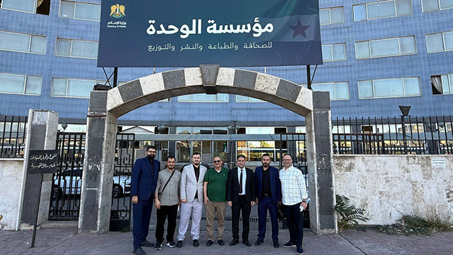وضم الوفد كلاً من سعيد احميدي مدير موقع “الجزيرة نت”، وعمار يحيى سكرتير تحرير “الجزيرة نت”، وعمر زقزوق مدير “نادي الإعلاميين السوريين في قطر”، حيث التقوا بكل من المدير العام لمؤسسة “الوحدة” خالد الخلف، ورئيس تحرير صحيفة “الثورة” نور الدين الإسماعيل.