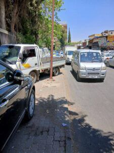 الأمر لم يقتصر فقط على إغلاق الطريق أمام المارة بل امتد ليشمل مداخل الأبنية عبر رَكن السيارات على الأرصفة.