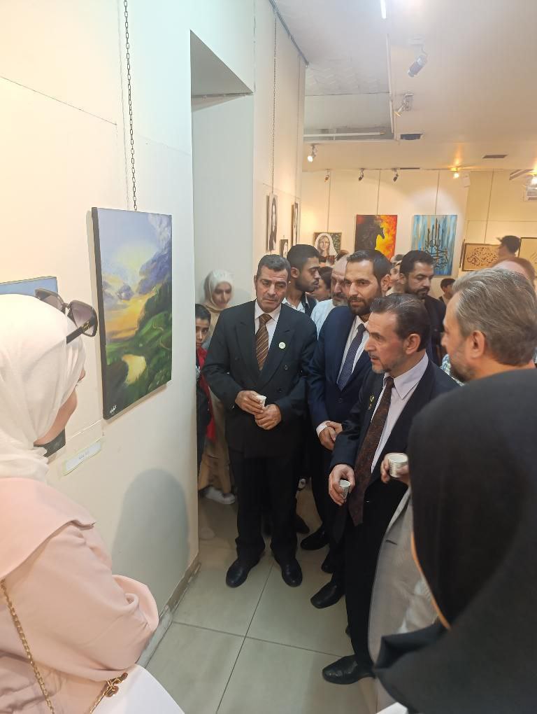 يذكر أنه افتُتح المعرض برعاية الأمين العام للجبهة الوطنية العربية مصعب حسين، وبحضور نائب الأمين العام عدنان موسى البداح وعدد من أعضاء الجبهة، ورئيس اتحاد الفنانين التشكيليين في سوريا الدكتور محمد صبحي، ورئيس اتحاد الفنانين التشكيليين الفلسطينيين الفنان محمد الركوعي، ورئيس اتحاد الفنانين بريف دمشق سهيل أبو حمدان، ومسؤول مكتب الفنون والأدب في الجبهة والمشرفة على المعرض الفنانة حنان محمد، و مدير المركز الثقافي العربي في أبو رمانة عمار بقله، إلى جانب حشد من الفنانات والفنانيين التشكيليين والإعلاميين والمهتمين بالشأن الثقافي والفني.