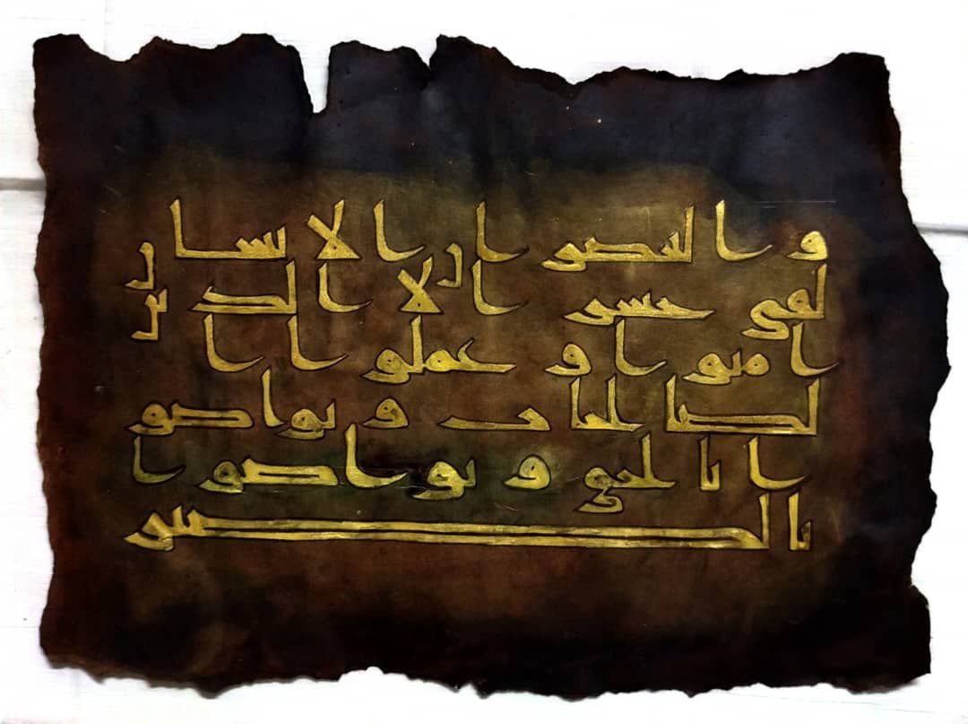 “تأمل معي مخطوطاً عمره أكثر من ألف ومئتي عام كتب على رق غزال.. تأمل وأبحر في تفاصيل ما وصل إليه الكاتب من بديع ومفاتن الخط وتجويده في التكوين والإمالة والدلالات”.
