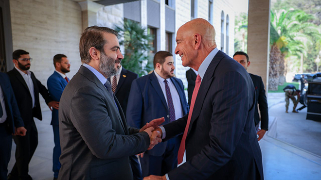 استقبل السيد الرئيس أحمد الشرع، المبعوث الأمريكي الخاص إلى سوريا السيد توماس باراك وقائد القيادة المركزية الأمريكية الأدميرال براد كوبر، وذلك بحضور وزير الخارجية والمغتربين أسعد حسن الشيباني و وزير الدفاع مرهف أبو قصرة ورئيس جهاز الاستخبارات العامة حسين السلامة.