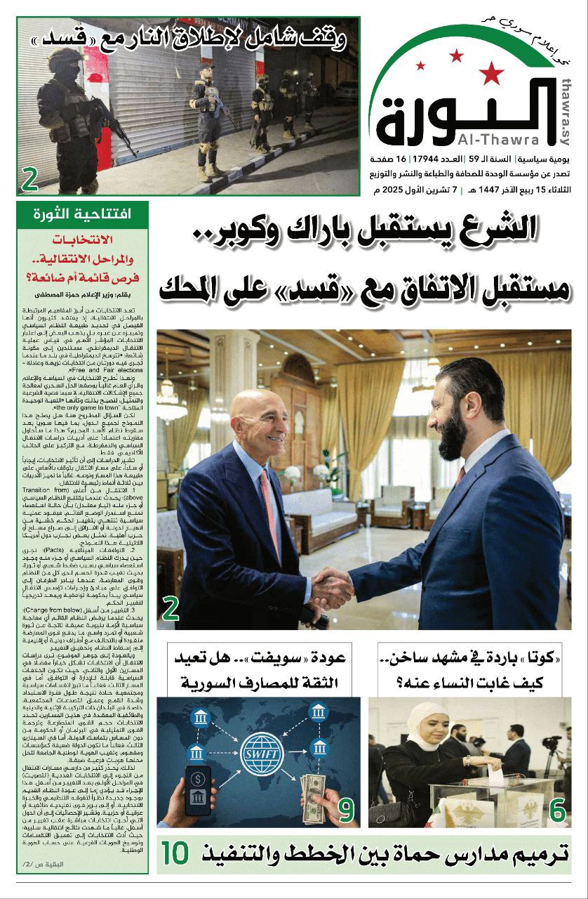 صحيفة الثورة العدد 17944 الصحيفة PDF # صحيفة الثورة في 7 أكتوبر , 2025 بتوقيت دمشـــق Loading... Taking too long? Reload document | Open in new tab تحميل العدد كاملاً [3.18 MB] مشاركة المقال: FacebookTwitterWhatsAppTelegramFacebook MessengerLinkedinطباعة