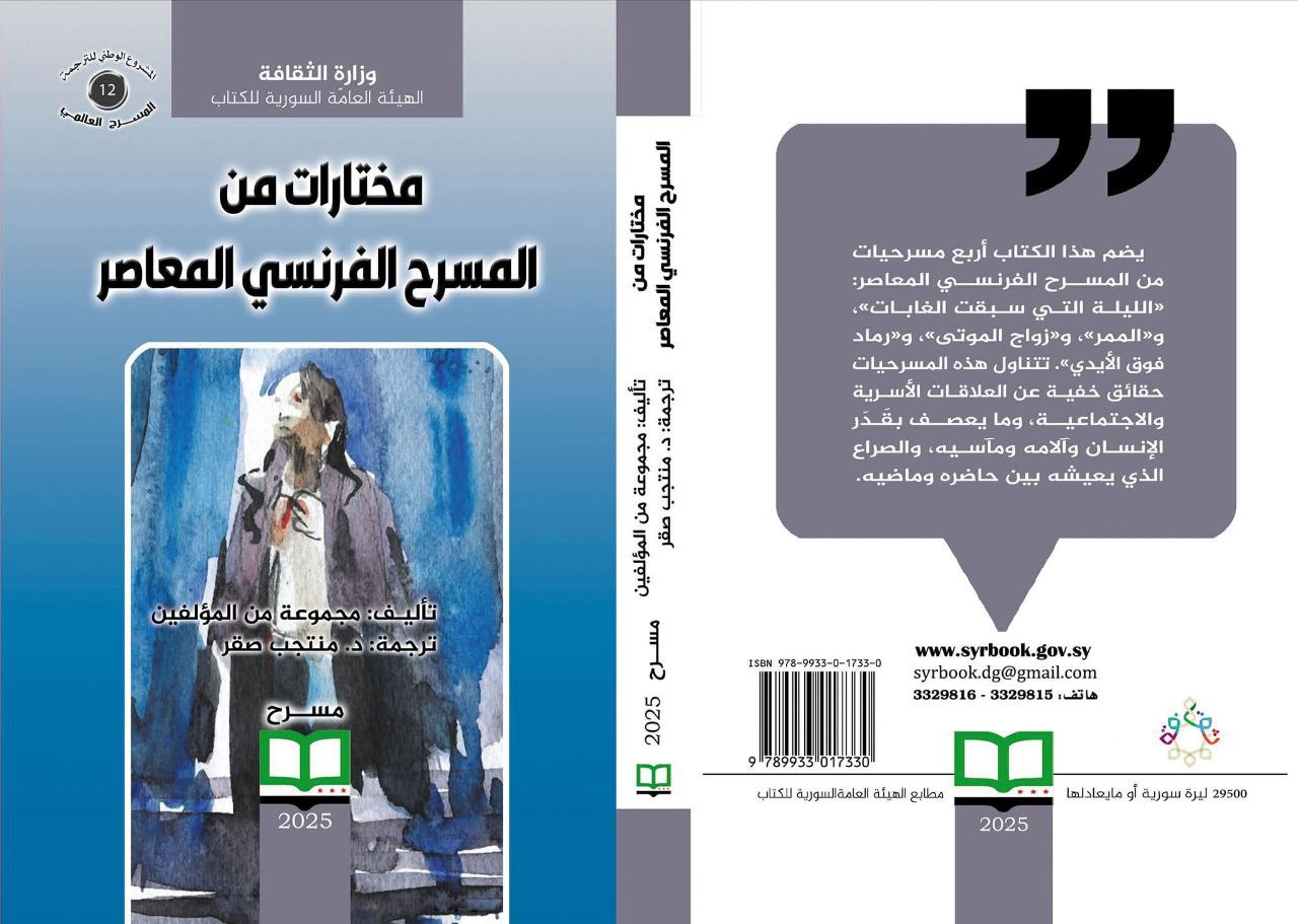 صدر مؤخراً عن الهيئة العامة للكتاب – وزارة الثقافة – كتاب جديد بعنوان «مختارات من المسرح الفرنسي المعاصر»، من ترجمة الدكتور منتجب صقر، يضم أربع مسرحيات تمثّل نماذج حيّة من تيارات المسرح الفرنسي الحديث.