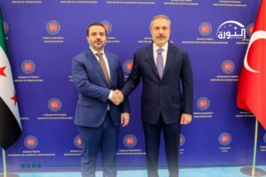 وكان وزير الخارجية أسعد الشيباني، قد زار تركيا، يوم الخميس الماضي، في (الثامن من الشهر الجاري)، وقال خلال مؤتمر صحفي مشترك، مع نظيره التركي هاكان فيدان في أنقرة، بأن زيارته لأنقرة تُعدُّ استمراراً وتعزيزاً لشراكاتنا الاستراتيجية وأخوتنا العميقة مع تركيا على أسس الشفافية والحوار، وبما يحفظ ويعزز سيادة بلدينا، ويحقق المصالح المشتركة، ويحفظ أمن بلدينا على حدّ سواء، لنمضي بخطوات واضحة وراسخة نحو السلام والاستقرار في المنطقة، والازدهار لسوريا وتركيا وللمنطقة بأسرها.
