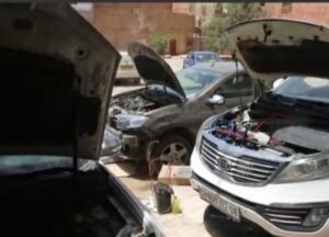 على امتداد شارع فرعي خلف “حج حبيب” في حي السليمانية، تصطف سيارات معطلة على جانبي الطريق، بعضها يبقى لأيام وربما أسابيع بانتظار دورها في ورشات التصليح، والأرصفة التي يفترض أن تكون ممراً آمناً للمشاة تحولت إلى مساحة لقطع الغيار القديمة وأدوات الميكانيكيين.
