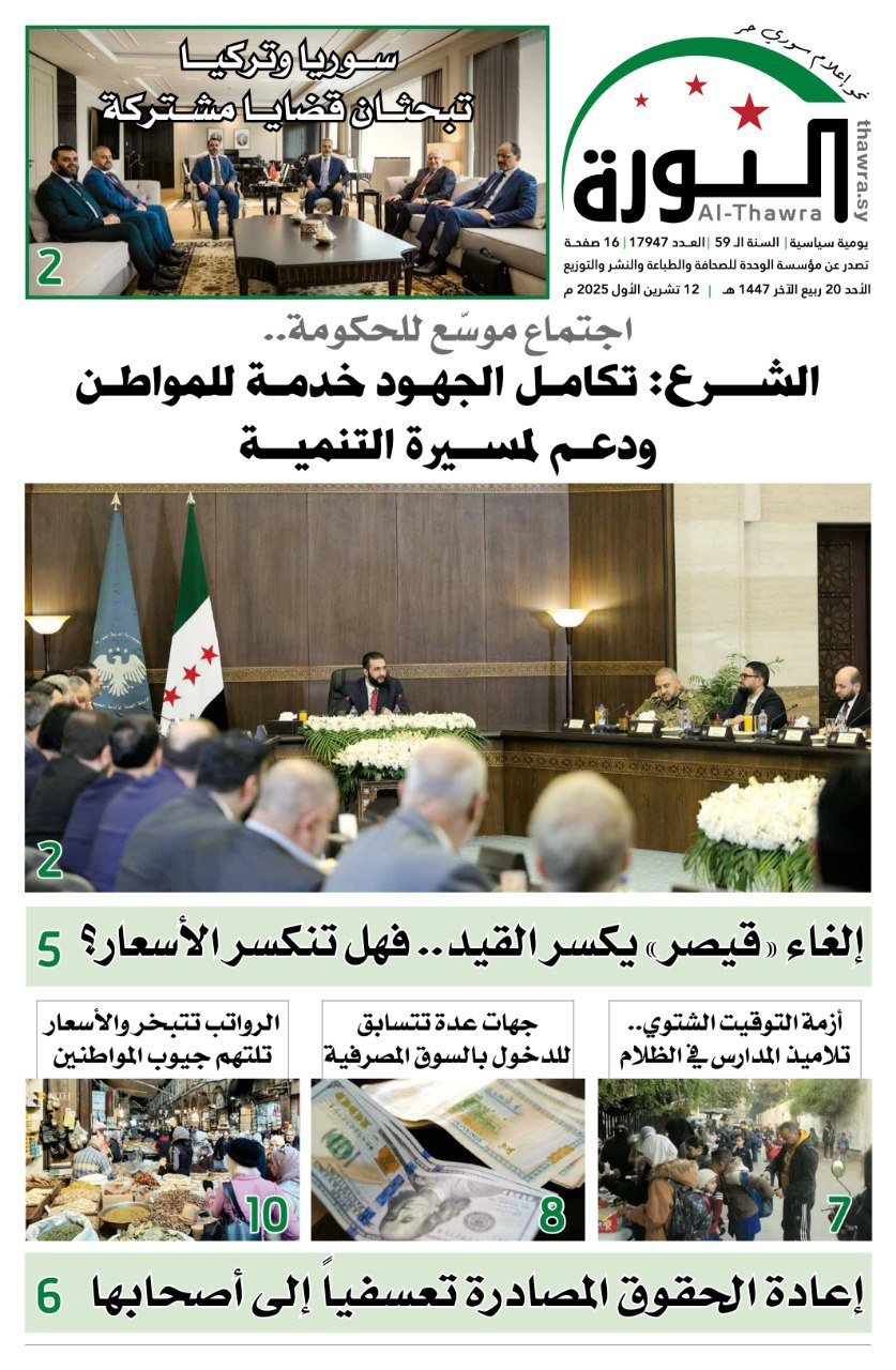 صحيفة الثورة العدد 17947 الصحيفة PDF # صحيفة الثورة في 12 أكتوبر , 2025 بتوقيت دمشـــق Loading... Taking too long? Reload document | Open in new tab تحميل العدد كاملاً [3.05 MB] مشاركة المقال: FacebookTwitterWhatsAppTelegramFacebook MessengerLinkedinطباعة