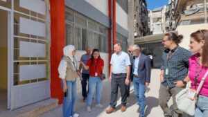 وخلال تفقده المدرسة اليوم، برفقة فريق من المنظمة، اطلع مدير التربية والتعليم في حلب أنس قاسم على مرافق المدرسة المختلفة، بما في ذلك القاعات الدراسية والمرافق المدرسية الأخرى.