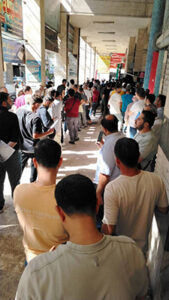 في معاناة قد تستمر لأيام، يتحشّد عشرات المواطنين يومياً ضمن طوابير طويلة أمام المكتب القنصلي بحلب، في مشهد بات مألوفاً في الآونة الأخيرة، في ظل الإقبال الكبير، و خاصة الذين كانوا خارج البلاد، لتصديق أوراقهم وثبوتياتهم.