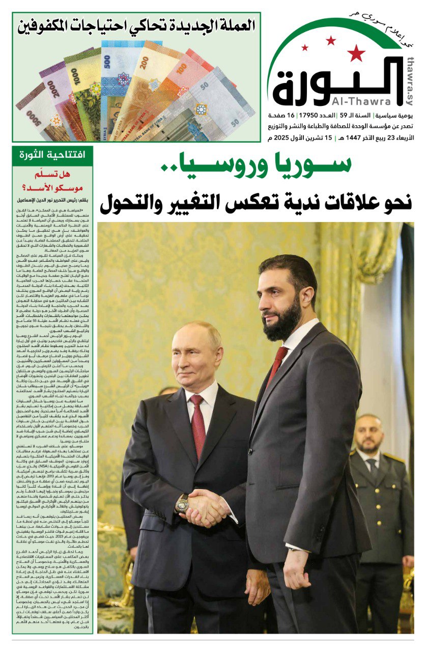 صحيفة الثورة العدد17950 الصحيفة PDF # صحيفة الثورة في 15 أكتوبر , 2025 بتوقيت دمشـــق Loading... Taking too long? Reload document | Open in new tab تحميل العدد كاملاً [3.41 MB] مشاركة المقال: FacebookTwitterWhatsAppTelegramFacebook MessengerLinkedinطباعة