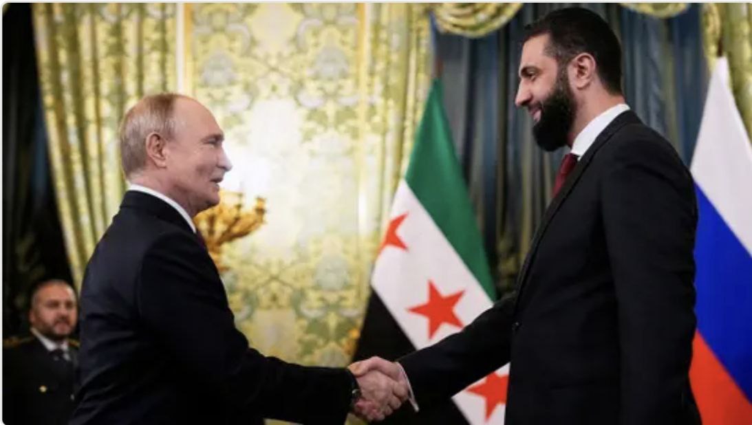 أكد الرئيس أحمد الشرع للرئيس الروسي فلاديمير بوتين أمس الأربعاء التزامه باحترام جميع الاتفاقيات السابقة المبرمة بين بلاده وموسكو، وهو تعهد يُشير إلى سلامة قاعدتي روسيا العسكريتين الرئيسيتين في سوريا.