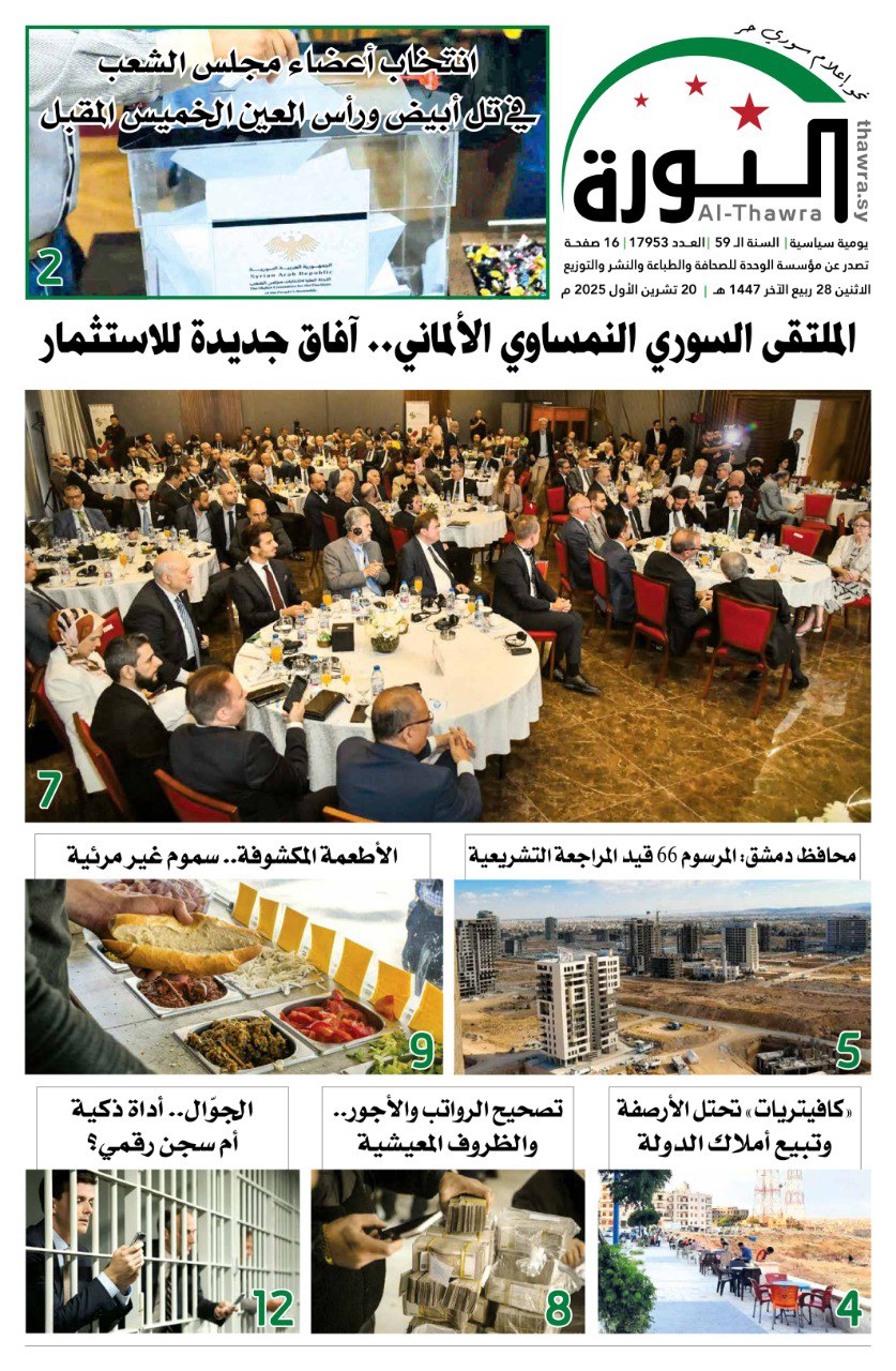 صحيفة الثورة 17953 الصحيفة PDF # صحيفة الثورة في 21 أكتوبر , 2025 بتوقيت دمشـــق Loading... Taking too long? Reload document | Open in new tab تحميل العدد كاملاً [3.50 MB] مشاركة المقال: FacebookTwitterWhatsAppTelegramFacebook MessengerLinkedinطباعة