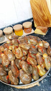 قائمة الطلبات التي عادة ما تسلم لأصحابها منتصف النهار تشمل الكوسا والباذنجان المحفورة والبامياء والفاصولياء المقمعة والبقدونس المفروم والنعنع المجفف والذرة المفرطة، وفي بعض الأحيان تقوم عائلة أبو أحمد بطبخ بعض الطبخات لتكون جاهزة مع عودة بعض السيدات العاملات من دوامهن ومع هذه الطلبات اليومية تعد العائلة العديد من مواد المونة من المكدوس الجاهز للحشي والمخللات والمربيات والفليفلة ودبس الرمان وغيرها العديد من المواد .