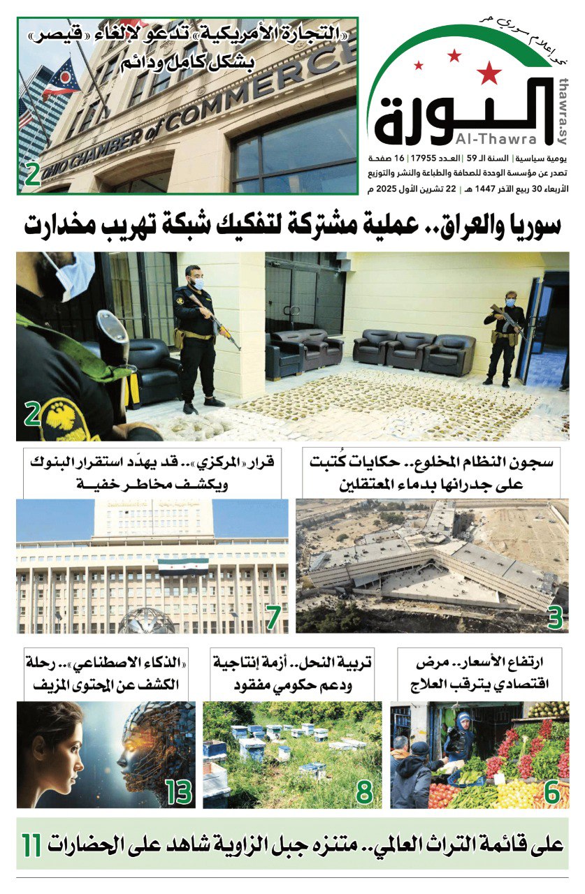 صحيفة الثورة العدد 17955 الصحيفة PDF # صحيفة الثورة في 22 أكتوبر , 2025 بتوقيت دمشـــق Loading... Taking too long? Reload document | Open in new tab تحميل العدد كاملاً [4.06 MB] مشاركة المقال: FacebookTwitterWhatsAppTelegramFacebook MessengerLinkedinطباعة