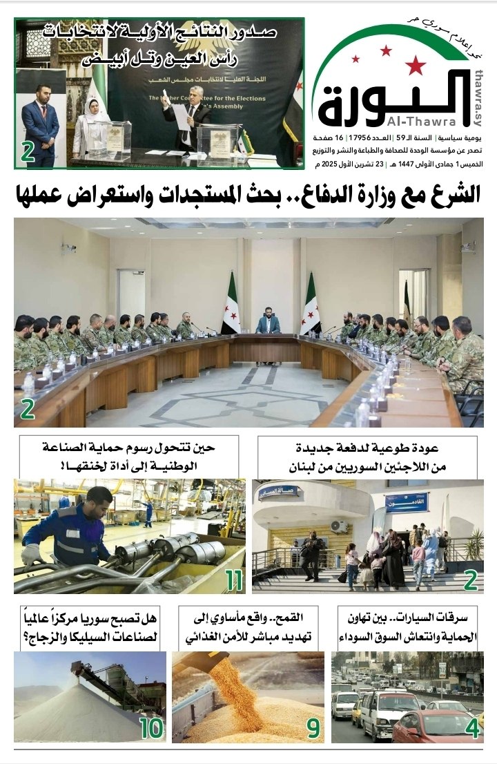 صحيفة الثورة العدد 17956 الصحيفة PDF # صحيفة الثورة في 23 أكتوبر , 2025 بتوقيت دمشـــق Loading... Taking too long? Reload document | Open in new tab تحميل العدد كاملاً [3.34 MB] مشاركة المقال: FacebookTwitterWhatsAppTelegramFacebook MessengerLinkedinطباعة