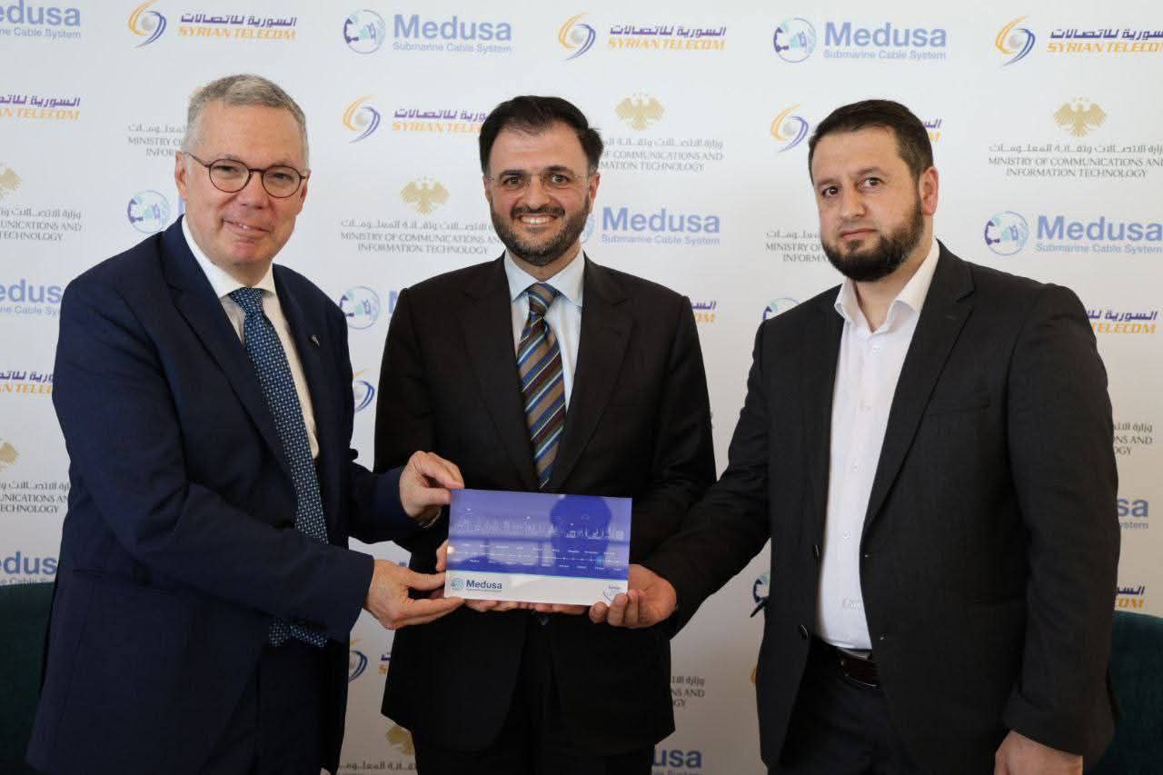 وقعت الشركة السورية للاتصالات وشركة ميدوسا الإسبانية اليوم اتفاقية لإنزال أول كابل بحري دولي يربط سوريا بالعالم، وذلك بحضور وزير الاتصالات والتقانة عبد السلام هيكل.