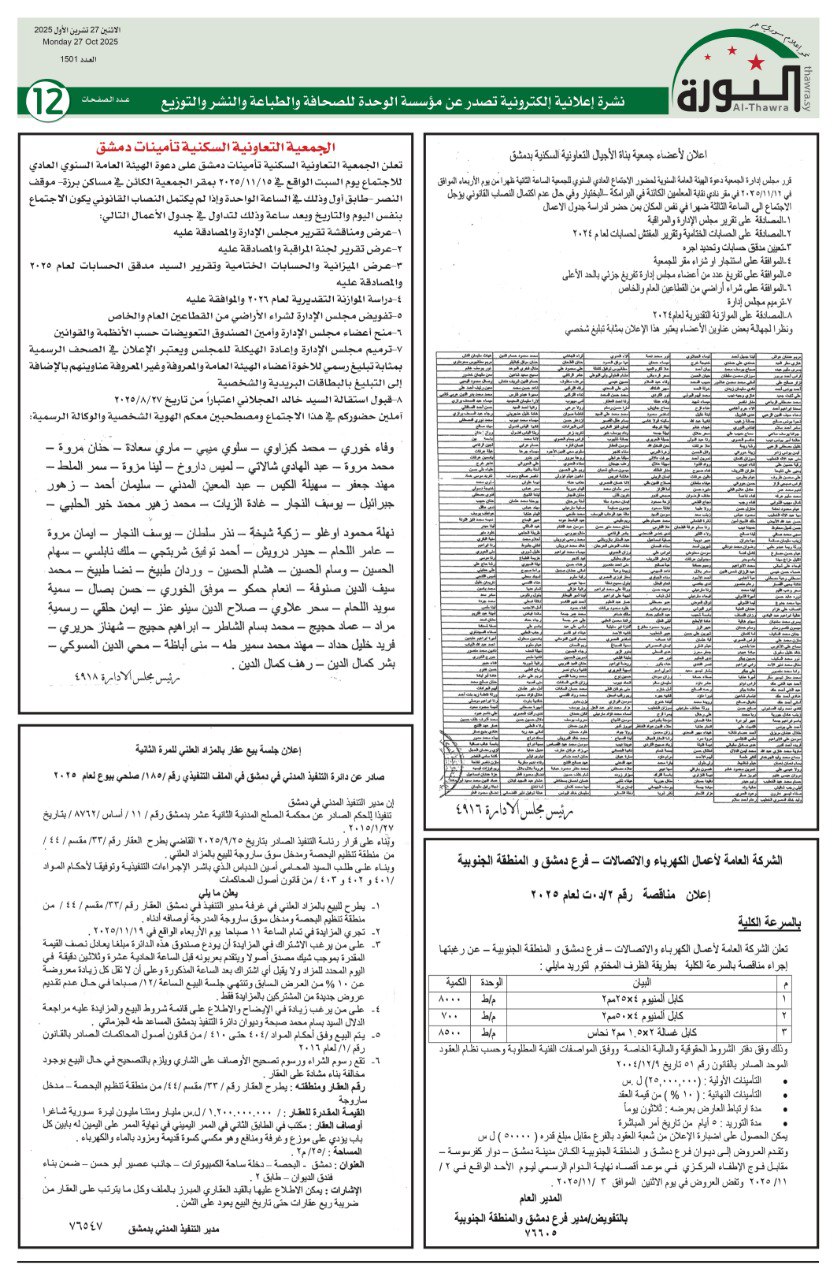 اعلانات العدد 1501 الاعلانات pdf # صحيفة الثورة في 27 أكتوبر , 2025 بتوقيت دمشـــق Loading... Taking too long? Reload document | Open in new tab تحميل العدد كاملاً [6.88 MB] مشاركة المقال: FacebookTwitterWhatsAppTelegramFacebook MessengerLinkedinطباعة