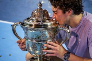 وعلى الرغم من معاناته من تشنج عضلي في الساق اليسرى خلال المجموعة الثالثة، نجح سينر في قلب الموازين، واستعادة تفوقه على الملاعب الصلبة داخل القاعات، محققاً فوزه الـ(21) على التوالي في هذا النوع من البطولات، كما حصد لقبه الرابع هذا الموسم، والثاني في فيينا بعد تتويجه عام (2023) لينضم إلى النجمين روجيه فيدرير وآندي موراي، في قائمة أبطال البطولة مرتين ضمن نادي المصنفين الأوائل عالمياً.